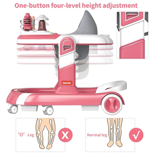 🎉【Adjustable Height】The baby walker has 4 height adjustments on the legs and the seat cushion can be adjusted wirelessly. Meet the needs of babies of different ages.