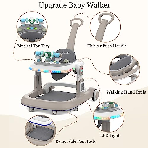 Baby Walker, Foldable Baby Walker, Baby Walker with Wheels & LED Light, Adjustable Speed and 3 Height for Baby Girl and Baby Boy, Baby Walkers for Babies 6-18 Months