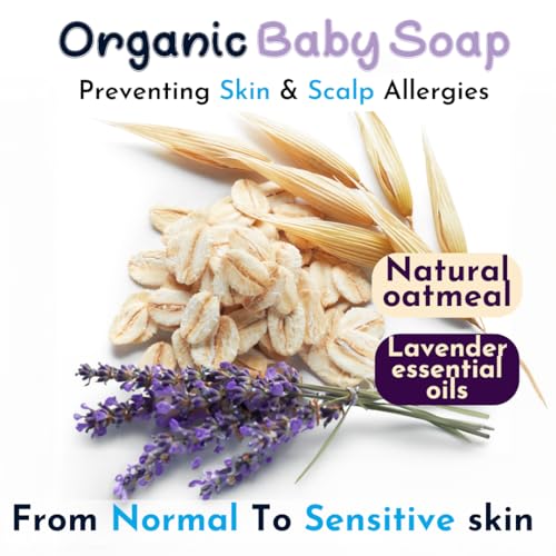 Baby Wash and Shampoo | Organic Baby Soap Bar | HYPOALLERGENIC | Baby Bath Soap Sensitive Skin | Relaxing Lavender Oil & Oatmeal | Fragrance-Free | Plastic Free | No SLS | Vegan | 3 Bars