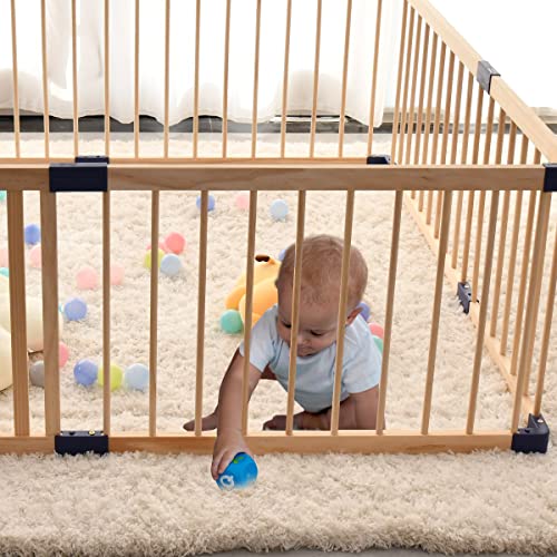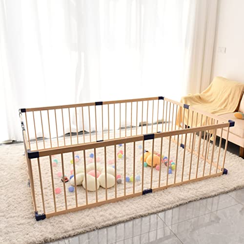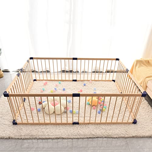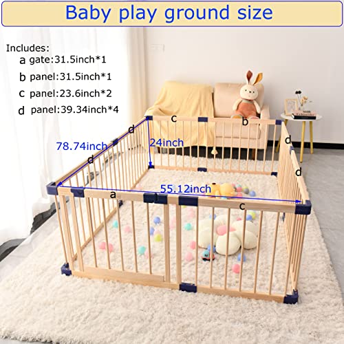 Baby Wooden Playpen, 55×79 Inches Baby Playars, Baby Fence Play Area with Safety Gate, Sturdy Play Yard for Babies and Toddlers, Indoor Safety Play Yard