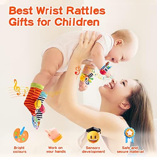 Baby Wrist Rattles Foot Finder Toys Set, Toddler Rattle Sock, Arm Hand Bracelet, Feet Leg Ankle Socks, Gift for Newborn Infant Babies Boy Girl Bebe(Origin Donkey)