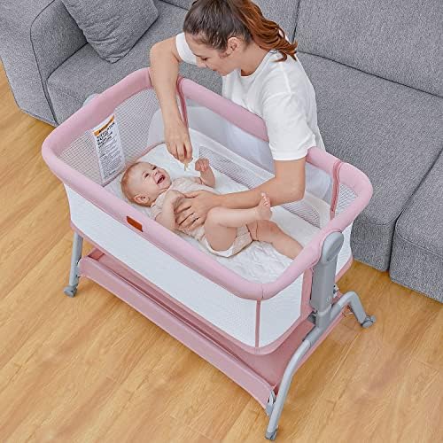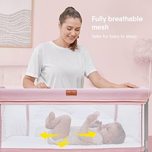 BabyBond Baby Bassinet, 3 in 1 Bassinet Bedside Sleeper with Soft Mattress and Sheet, 6 Height Adjustable Cosleeper Bedside Crib, 4-Sided Mesh Bedside Bassinet for Baby