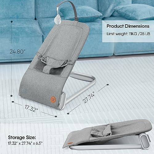 💟Portable Baby Bouncer: Compared with electric baby swing, our baby bouncer chair is lightweight – at only 5.5 lbs/ 2.5kg, bouncer is easy to transport, fold flat to move from room to room. Baby rocks naturally – no plugs, batteries or switches needed.