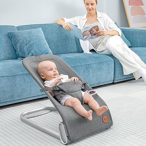 BabyBond Baby Bouncer, Baby Bouncer Seat, Infant Bouncer Baby Seat with Toys, Bouncer Seat for Babies 0-12 Months, Portable Baby Chair- Natural Bouncy (Grey)