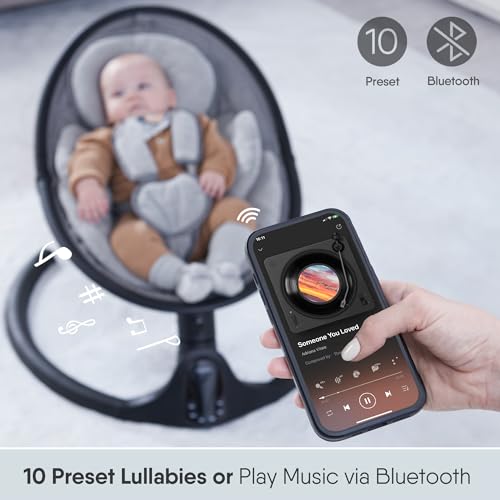 BabyBond Baby Swings for Infants to Toddler | Bluetooth Baby Swing with 3 Seat Positions | 5 Natural Sway Motion | Bluetooth Music | 5-Point Harness | Includes Remote Control