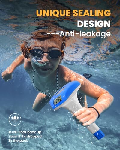 🍇UNIQUE SEALING DESIGN: BALDR pool thermometer features an integrated injection molding technique that enhances its waterproof performance to an IPX8 rating. By sealing all open spaces, it provides complete protection against leaks, ensuring the thermometer remains dry.