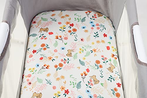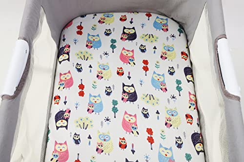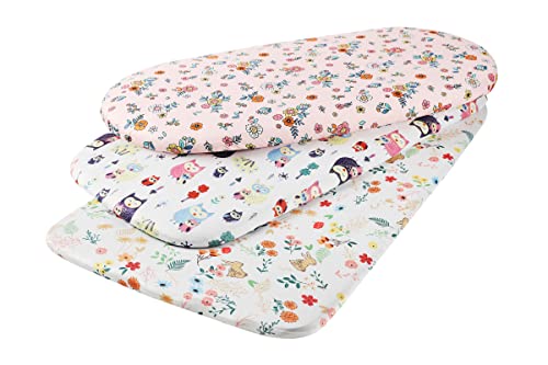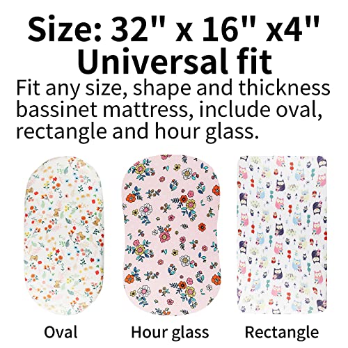 Bassinet Sheets Set 3 Pack for Baby Girl, Stretchy Soft Jersey Knitted Fitted Sheet Universal for Oval Rectangle and Hourglass Bassinet Mattress, Flower, Rabbit and Owl Printing
