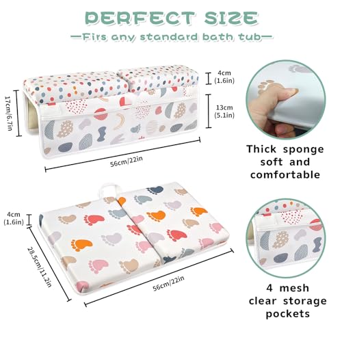 đăBaby Bath Mat – Large PocketsăThe bathtub kneepad is equipped with 4 large mesh toy pockets, which can store essential washing and care items or toys within easy reach for quick and easy access, making your bath time easier and stress-free