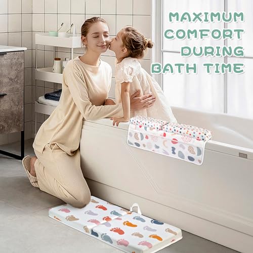 Bath Kneeler and Elbow Rest Pad Set – 1.6” Comfortable Thick Baby Bath Tubs Kneeler, Quick Dry Elbow Rest Pad for Baby Bath Time, Non-Slip Bath Kneeler with Baby Bath Toys Pocket(White)
