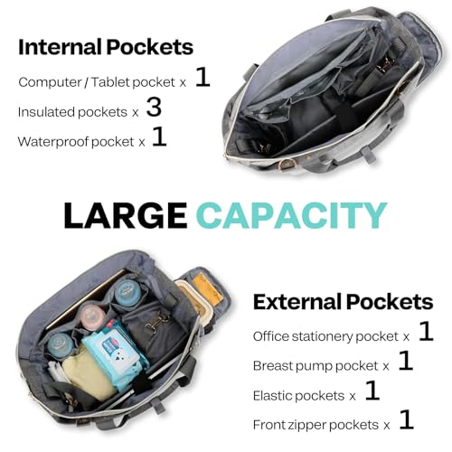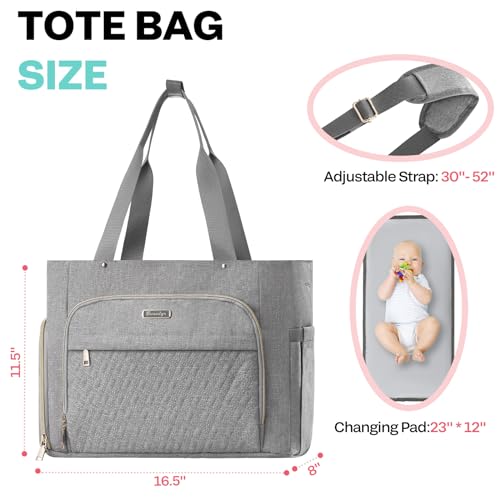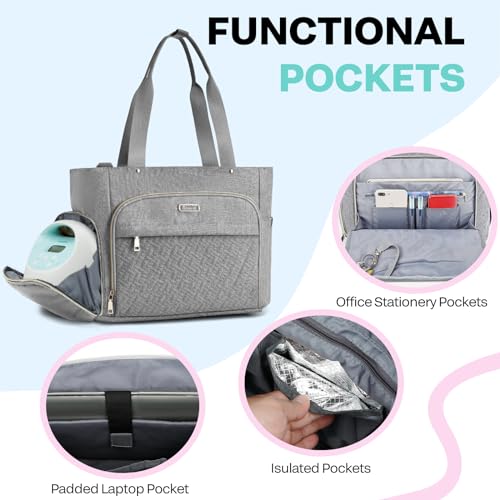 Beaulyn Diaper Bag Tote,Breast Pump Bag with 15.6 Inch Laptop Sleeve for Women Working Moms,Travel Baby Bag with Changing Pad Isulated Pockets