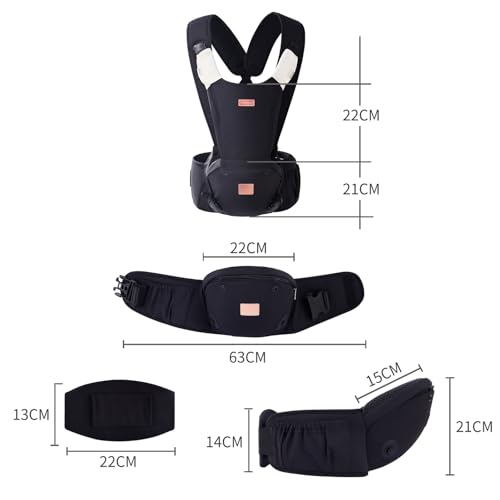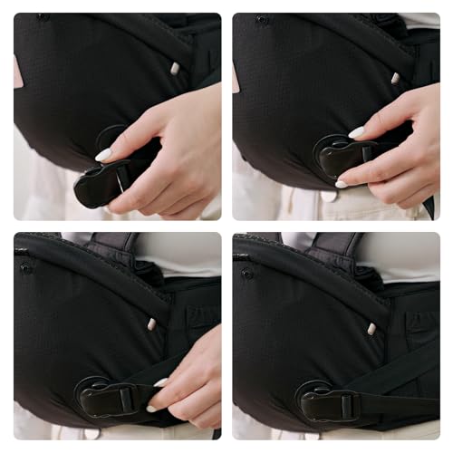 Bebamour Baby Carrier Hip Seat Soft Baby Hip Carrier 6-in-1 Baby Hip Seat with Back Support Attached 2 Pieces Teething Pads (Black)