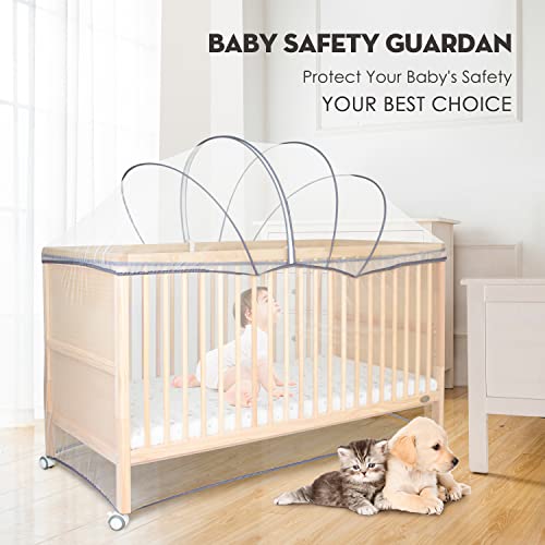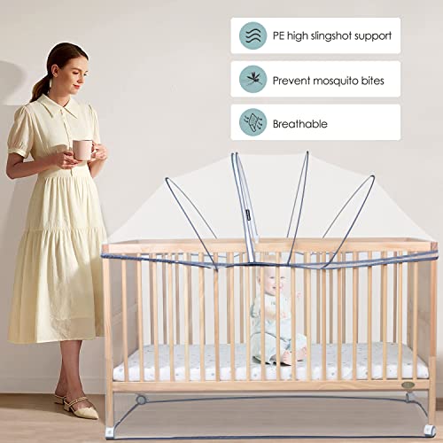 Easy to Install: The crib mosquito net consists of two parts, first put the bed skirt on the crib, and then put the mosquito net tent on the crib to complete the assembly.
