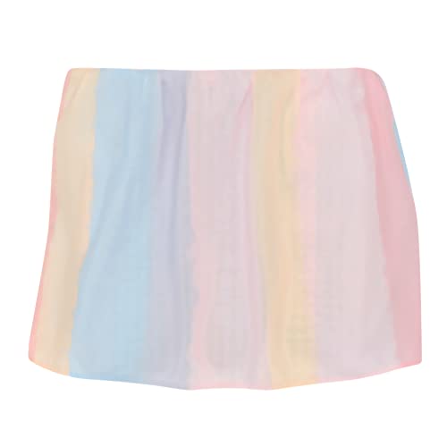 Gorgeous shirred rainbow-colored crib skirt with 14.5″ drop length