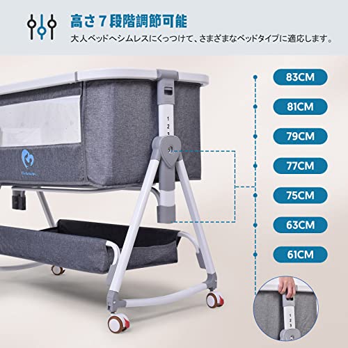 Adjustable Height: The bassinet comes with an adjustable height feature(7 heights,24″-32.6″), allowing you to easily customize the height to match your queen bed. This makes it easier to keep an eye on your baby while they sleep and also makes it more convenient for nighttime feeds.