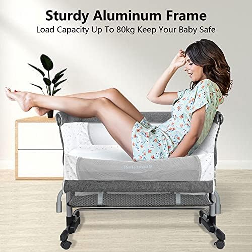 Bellababy Bedside Bassinet, Bedside Sleeper, Bedside Crib with Storage Basket, Easy Folding Portable Crib, Adjustable Portable Bed for Infant/Newborn (Dark Grey)