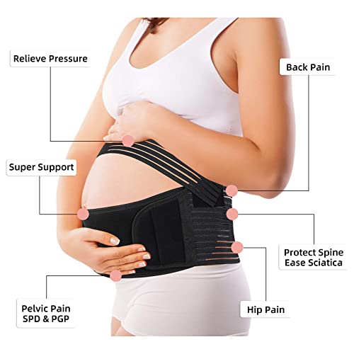 Belly Bands For Pregnant Women, 4-in-1 Maternity Support Belt, Belly Support Band For Pregnancy, Adjustable Maternity Belt Pregnancy Support With Shoulder Strap, For Belly/Waist/Abdomen/Back, Black, L