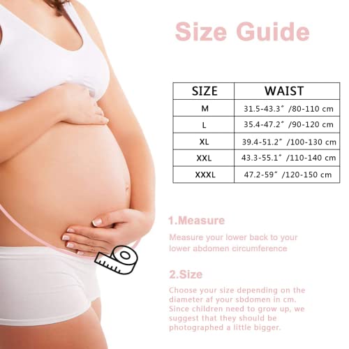 Measure the circumference from your lower back to upper your belly (slightly above pubic area), and choose one size from below size reference table in the lower range of your measurement in order to plan for belly growth.