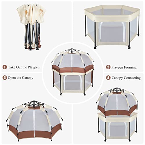 ❤ Two Way Use – The playpen comes with a detachable UPF50+ sun canopy to create a cool and pest-free environment for your baby. You can use it as a baby tent with the canopy. Or take off the canopy, let your child play safely in the large play yard.