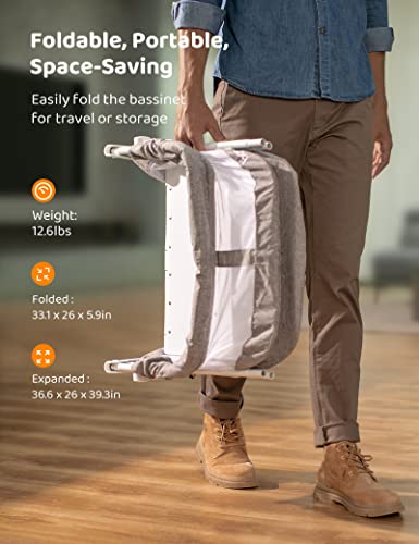 COMPACT & FOLDABLE: At a mere 12.4lbs and 33.1 x 5.9in, this baby bassinet crib is foldable which makes storing, moving and transporting a breeze