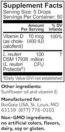 NEWBORNS +: Just 5 drops, once daily, provides the exclusive probiotic L. reuteri Protectis & 400 IU of Vitamin D