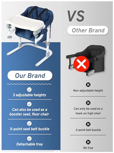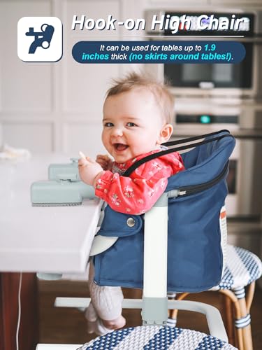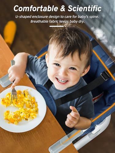 BIUSIKAN Travel High Chair, Foldable High Chairs for Babies and Toddlers, Hook on High Chair with Carry Bag, Booster Seat for Kitchen Chair, Adjustable Height, Portable High Chair for Camping