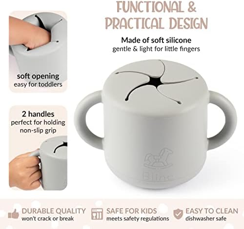 Snack Containers for Kids with Double Handle – These silicone spill proof training cups come with double handles for babies to grasp tightly, designed for small hands, so that children hold the small cups independently.