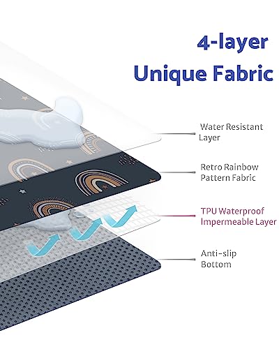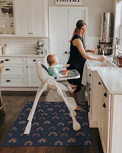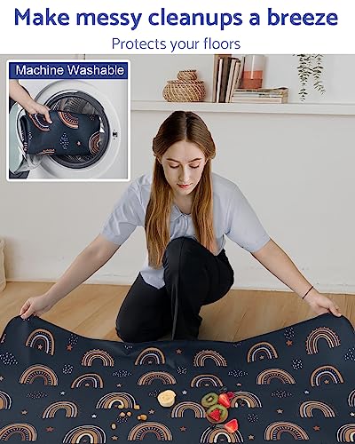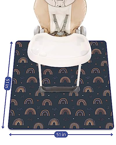 Blissful Diary Baby Splat Mat for Under High Chair, 51 x 51 Inch Splash Mat, Waterproof and Washable Spill Mat, Anti-Slip Floor Protector, Retro Rainbow