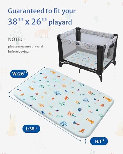 Designed for Pack N Plays – The pack and play mattress is 38 x 26 inches in size(not designed for standard cribs or mini/portable cribs). Provides a snug and secure fit with rounded edges, reducing gaps and creating a safer space for your little one while exploring.