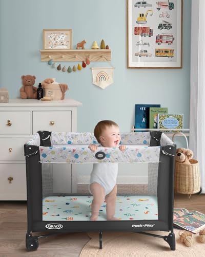 Ultra-Soft Jacquard Cover – The outer cover of the mattress for pack and play is made of breathable fabric for noise reduction, and it’s easy to disassemble for machine washable with zipper design. The cover is beautiful and lovely with the hand-drawn graffiti style design woodland animals patterns, great for decorating your nursery.