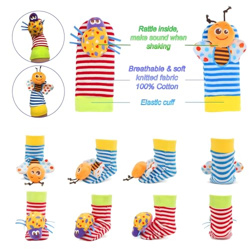 Bloobloomax Baby Rattles Toys for 0-12 Month, Infant Girl Boy Toys for Babies 3-6 Months, Newborn Hand & Foot Toys for 0 to 9 Months, Baby Shower Gifts Set with Wrist Rattle Socks