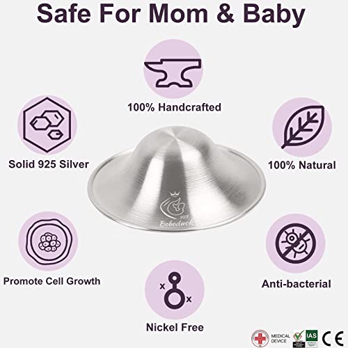 Boboduck The Original Silver Nursing Cups – Nipple Shields for Nursing Newborn, Newborn Breastfeeding Essentials Must Haves for Soothe and Protect Your Nursing Nipples – 925 Silver (Regular Size)
