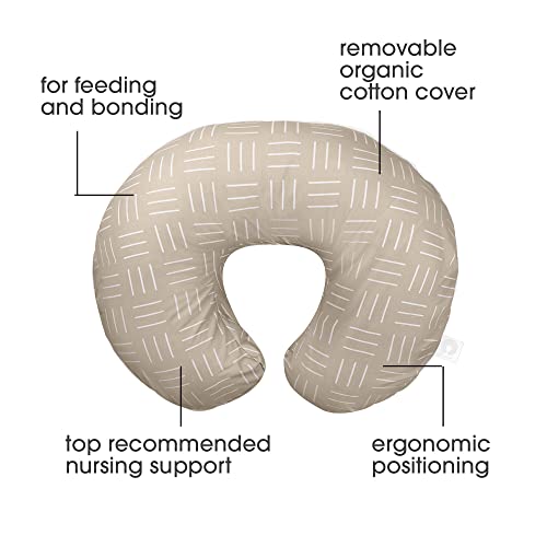 Boppy Nursing Pillow Organic Original Support, Sand Criss Cross, Ergonomic Nursing Essentials for Bottle and Breastfeeding, Firm Hypoallergenic Fiber Fill with 100% Organic Cotton Nursing Pillow Cover
