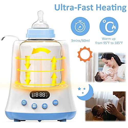 LCD Display & Temperature Accuracy: Bottle warmer for breastmilk with LED screen and touch button, show the preset temperature for you in constant temperature, preset the feeding time on the late nights and early mornings. Accurate heating time can be precisely adjusted to 1 minute. Accurate temperature can be precisely adjusted to 1°C. Adjustable temperature range from 35°C (95°F) to 85°C (185°F).