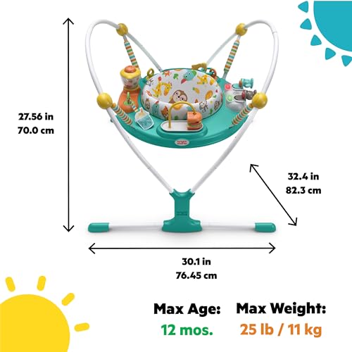 This activity jumper makes a great baby shower gift idea; small footprint with assembled dimensions 30.1” x 32.4” x 27.2”
