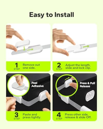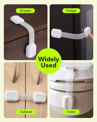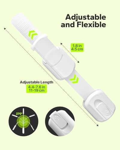 Versatile Design: Our adjustable and flexible strap locks allow them to fit a wide range of cabinet sizes and shapes, including drawers, toilets, and fridge freezers. They work so well, you can use them in your kitchen, bathroom, laundry room, and beyond.