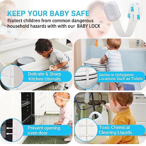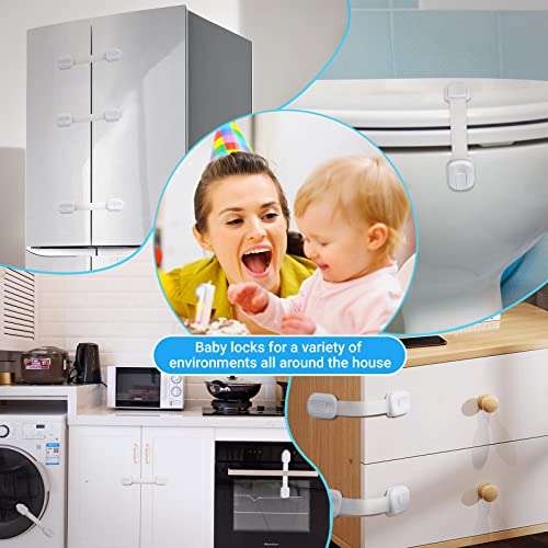 Cabinet Locks for Babies, Lobularsky 8 Pack, Multi-Use Baby Proofing Cabinets for Fridge, Latches, Drawers, Dishwasher, Cupboard, Child Safety Cabinets Locks for Easy Installation, White, 3M Adhesive