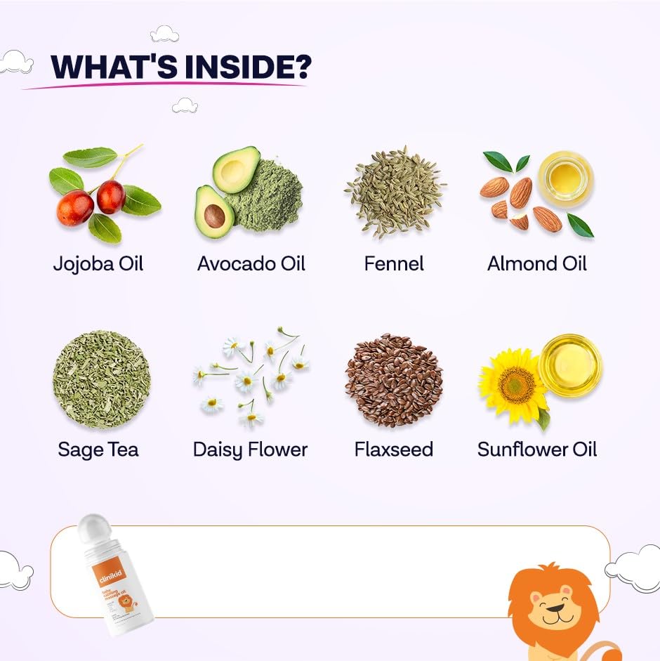 Clinikid calming massage oil is easily used with its practical roll-on design that can be easily applied without damaging the skin.