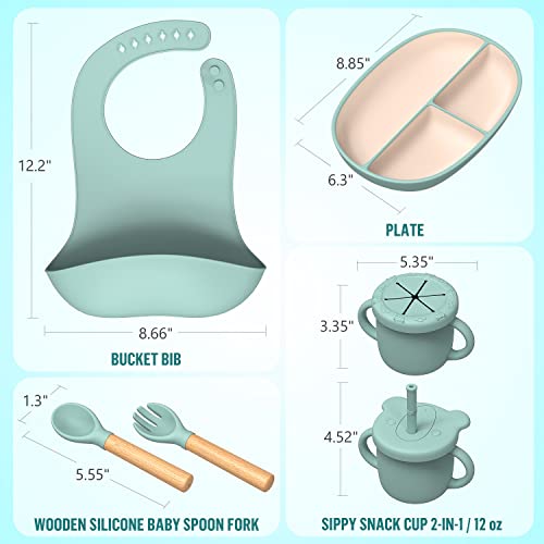 CAVEE Baby Led Weaning Utensils Infant First Stage BLW 6-12 Months Silicone Feeding Set (BPA-Free) with Suction Plate and Sippy Snack Cup 2-in-1 Easy-Clean Toddler Eating Essentials Infant
