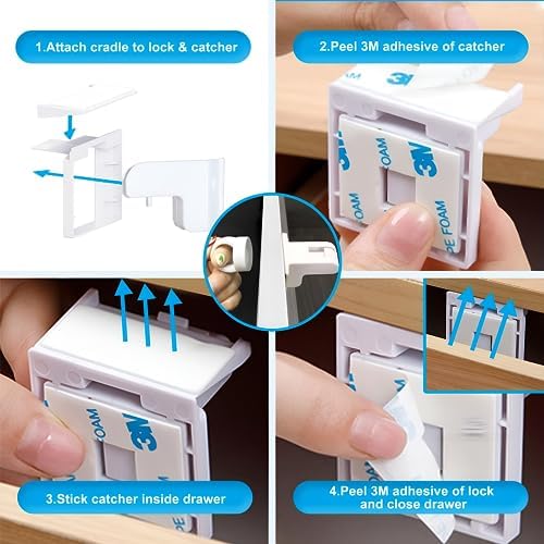 đź”’No-Drill Baby Locks: Keep your child safe with our easy-install cabinet locks for toddlers. Childproof your drawers and cabinets with powerful magnetic keys. No damage, just safety.