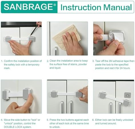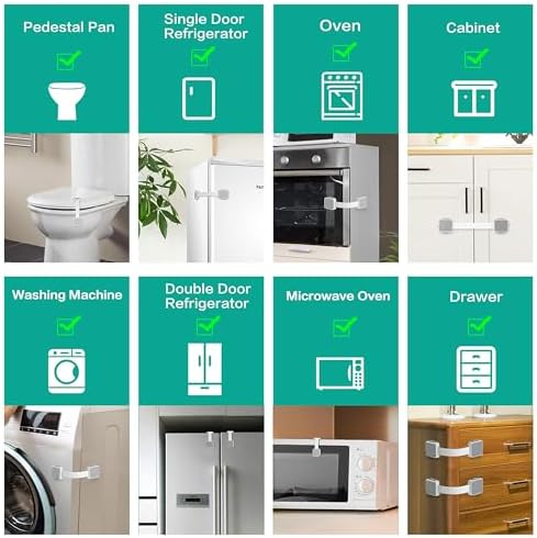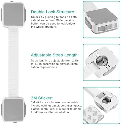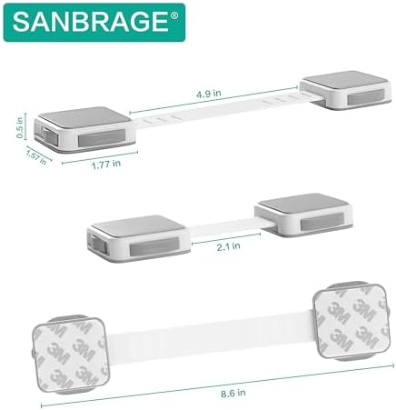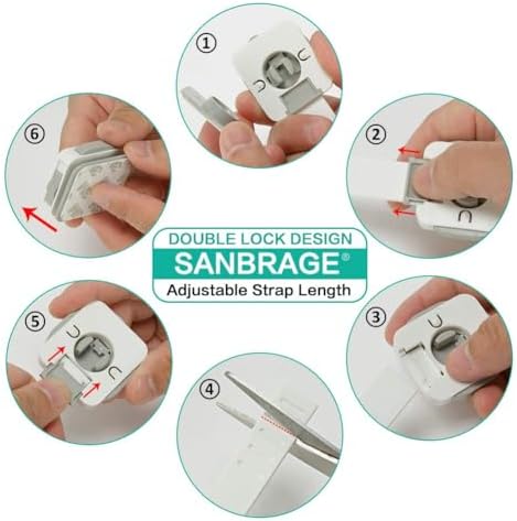 Child Safety Strap Locks (4 Pack) for Fridge, Drawers, Oven, Cabinets, Toilet, Dishwasher, Double Lock Structure, 3M Adhesive No Drilling-SANBRAGE Baby