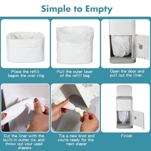 Nice Scent: the disposable diaper pail has a light fragrance, which can effectively cover the embarrassing smell of diapers, making your room smell good even the trash can is full, reducing the number of times to take out the trash, time saving and labor saving