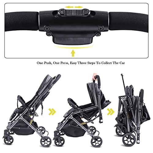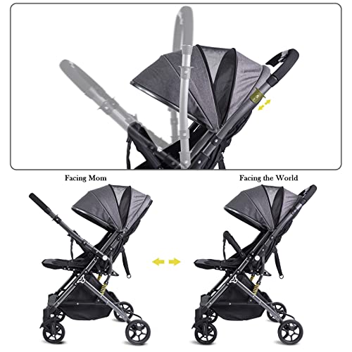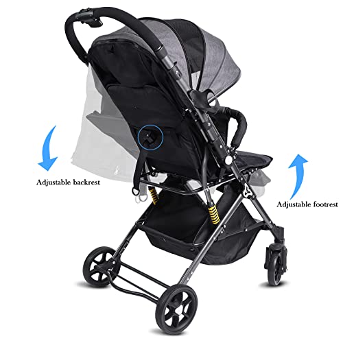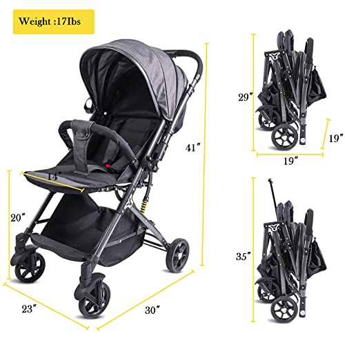LafingKiz Compact Infant Stroller Baby Strollers, Reversible Seat, Folding Lightweight Travel Stroller with Adjustable Backrest Canopy Cup Holder Storage Basket Double-Sided Cotton Pad