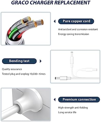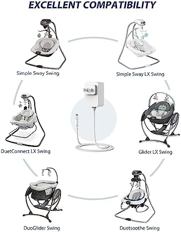 CONMDEX Graco Swing Power Cord 6ft, Replacement for Duetsoothe/DuoGlider/Graco Baby Swing/Graco Simple Sway Swing/Glider LX/Simple Sway LX, Adapter 5V Charger Baby Swing Ideal for Parents, White