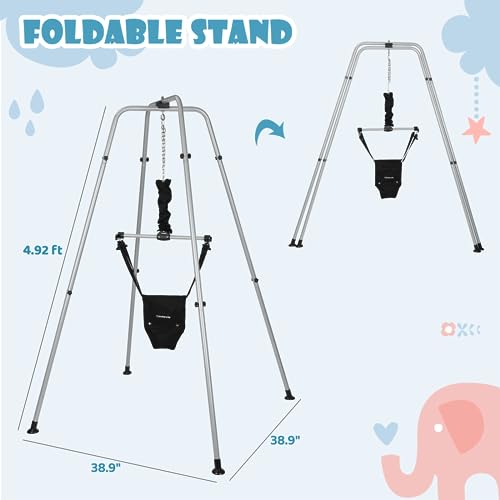 Cowiewie Baby Jumper with Strong Support Stand, w/Walking Harness Function, Baby Exerciser Quick-Fold and Storage