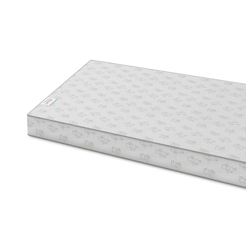 EASY TO CLEAN: Vinyl cover is waterproof and wipes clean for easy cleanup | IMPORTANT INFO: 5-year warranty | Made in USA | Size: 27.5”W x 52”D x 5”H (fits standard cribs and toddler beds) | Lightweight design makes changing sheets easy | Square corners help for secure fit inside the crib or toddler bed