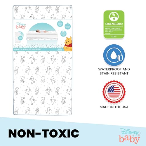 Delta Children Disney Winnie The Pooh Dual Sided Crib and Toddler Mattress Sustainably Sourced Fiber Core – Waterproof – GREENGUARD Gold Certified (Non-Toxic) – Lightweight – Made in USA