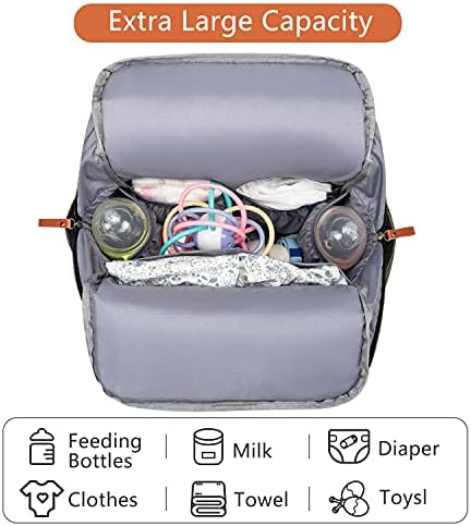 Large Capacity – This diaper bag women backpack have 3 insulated baby bottle holders to keep them warm or cold; a padded laptop/tablet pocket; tissue pocket; mesh pocket organizers and a pocket with keyring. you can put milk bottle, water bottle, clothes, diaper, towel, etc in different separate pockets.