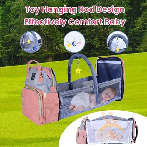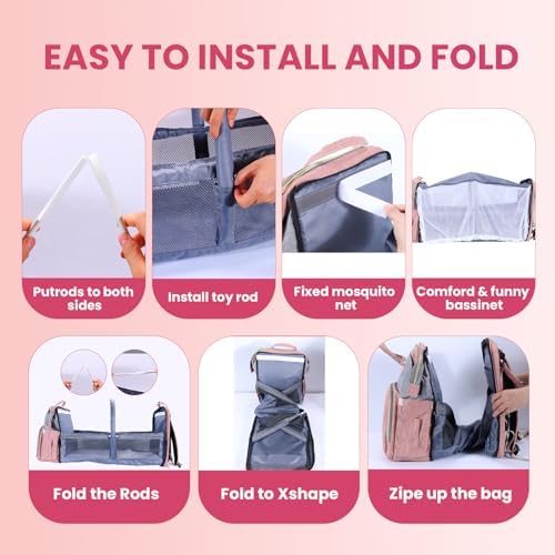 Diaper Bag Backpack with Changing Station, Baby Bag for Boys & Girls-Baby Shower Gifts, Multifunctional diaper backpack Large Capacity (Pink)