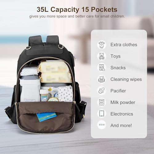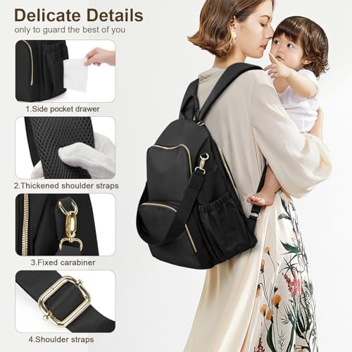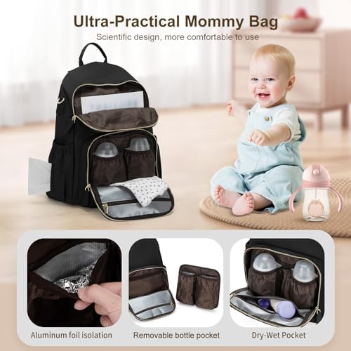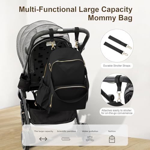Diaper Bag Multifunction Travel Backpack for Mom and Dad Maternity Baby Changing Bag Large Capacity Waterproof with Stroller Strap, Black