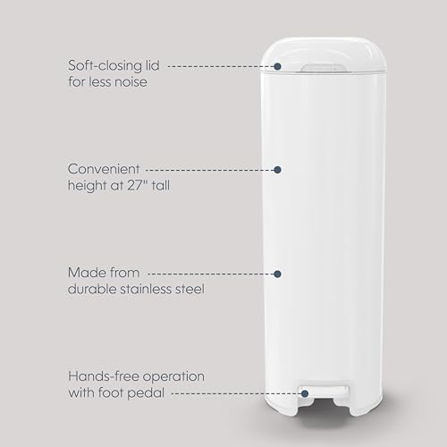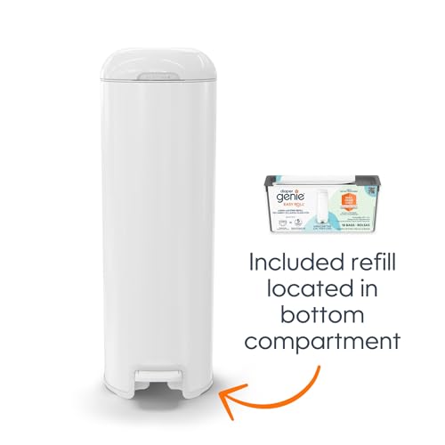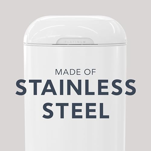 Diaper Genie Platinum Pail (Lilly White) is Made of Durable Stainless Steel and Includes 1 Easy Roll Refill with 18 Bags That can Last up to 5 Months.